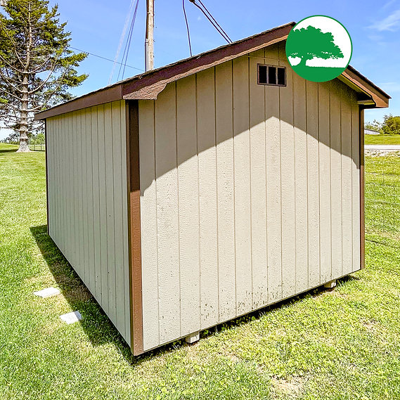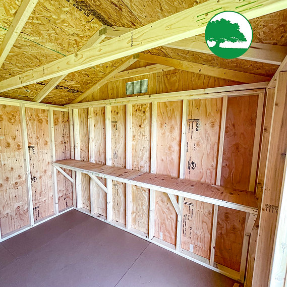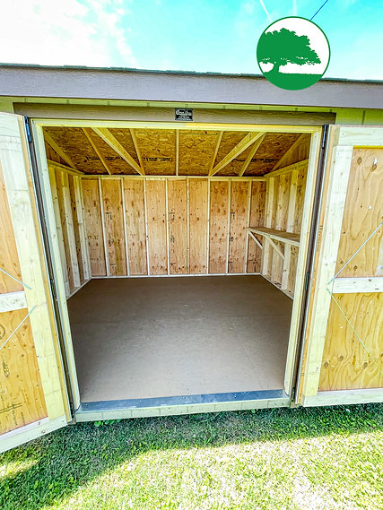 Additional Features: Double Doors, 10′ Shelf, DuraTemp Plywood Siding (50 Year Warranty), LP ProStruct Coated Flooring, 1/2″ OSB Roof Sheeting, Dimensional Shingles (30 Year Warranty) & FREE Delivery with blocks within 50 miles.