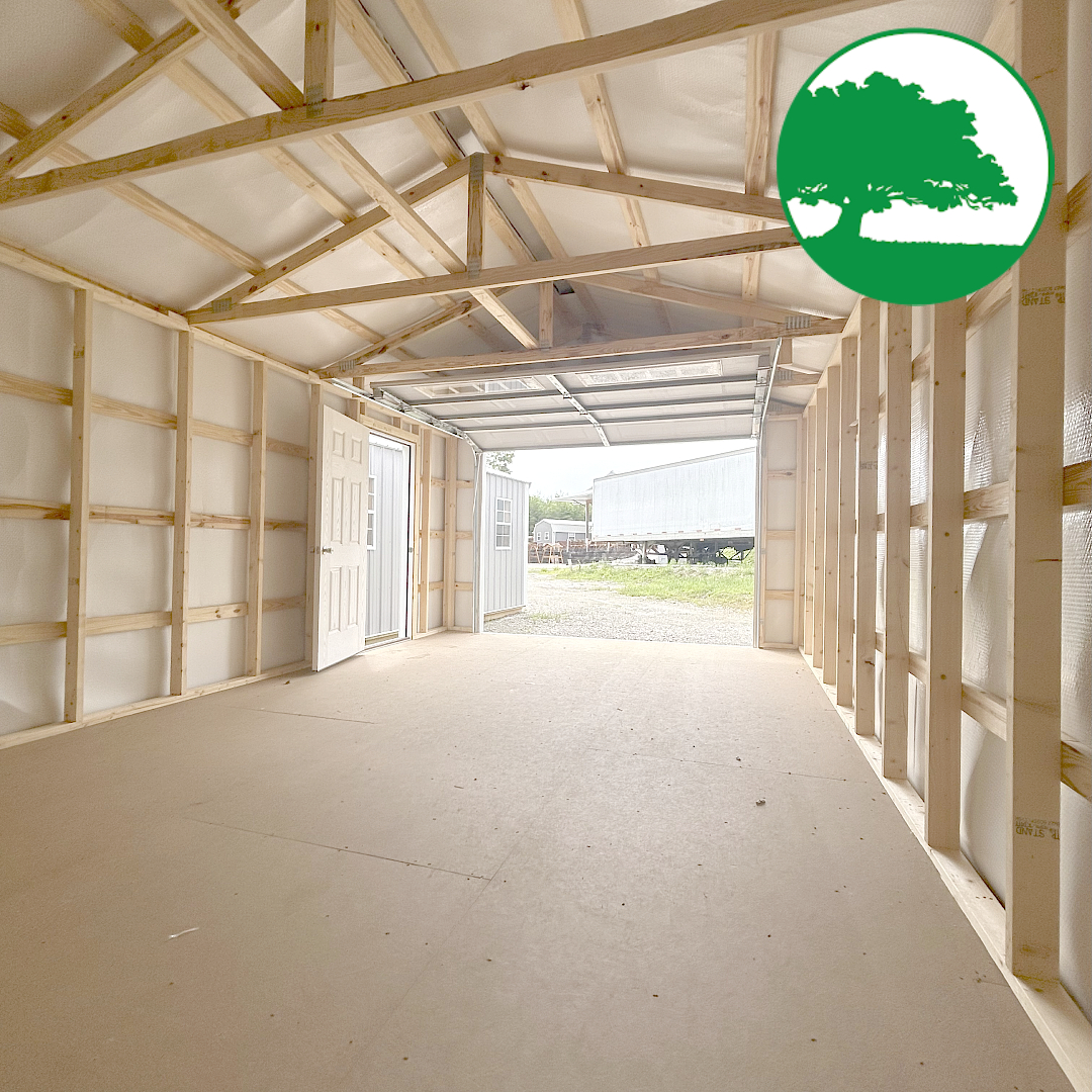Additional Features: 10′ x 7′ Overhead Door w/ Woodbridge Window, 7’8″ Wall Height, 6-Panel Fiberglass Entry Door, Upgraded Bubble Wrap Walls, Baked-On Enamel Metal Roofing w/ Bubble Wrap below, LP ProStruct Flooring w/ SmartFinish, Heavy Duty aluminum diamond plate threshold & FREE Delivery with blocks within 50 miles.