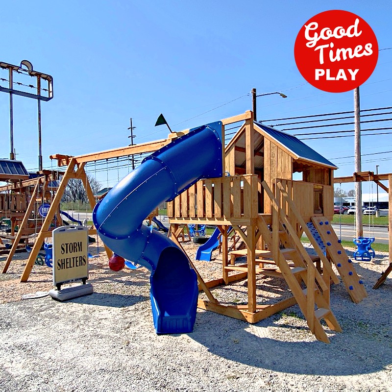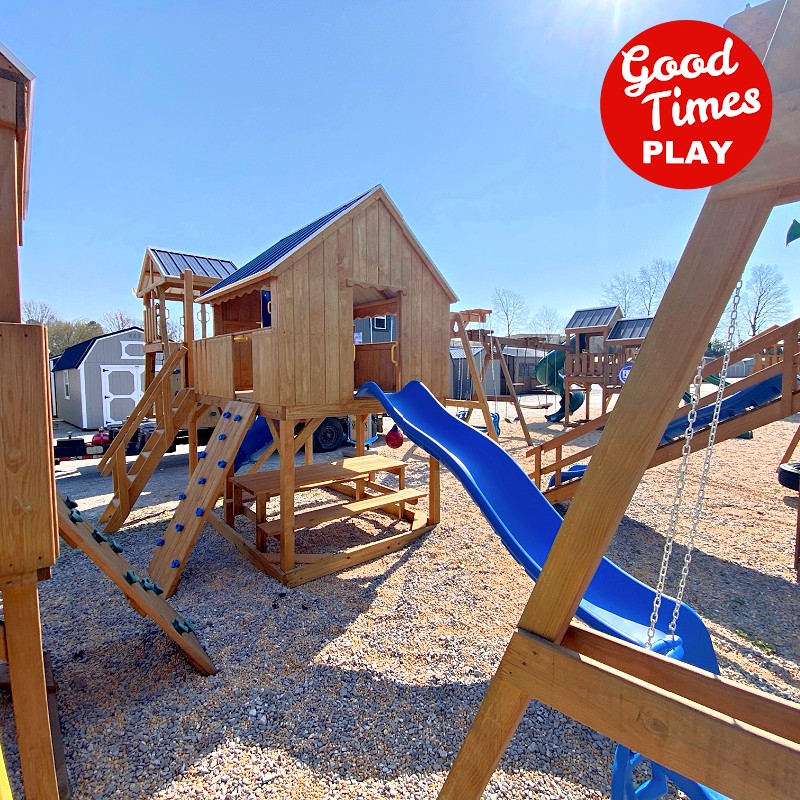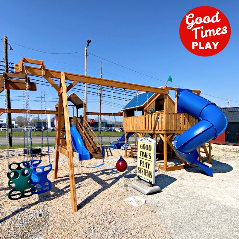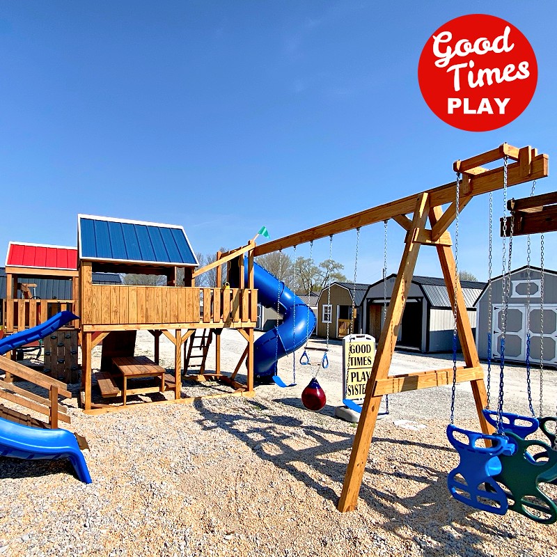 beams / accessories: tall swing pole, 4 position swing beam with (2) belt swings, buoy ball & ez ryder (2-kid swing)