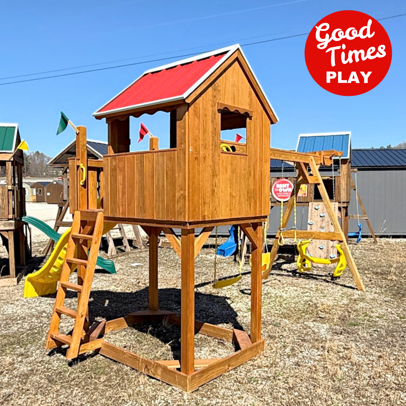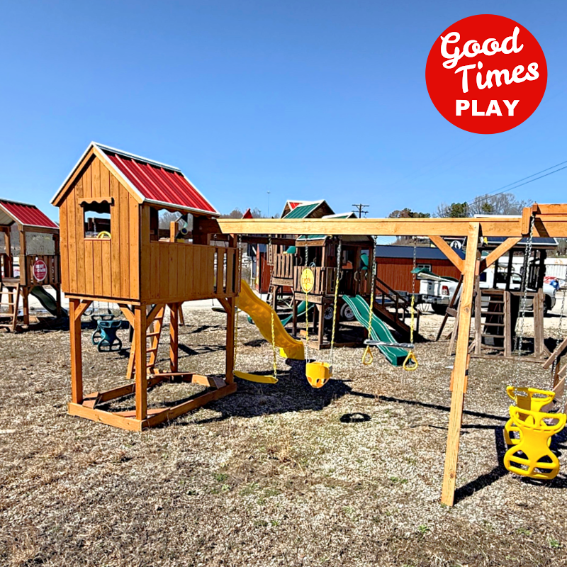 • Beams / Accessories: 4 position swing beam with belt swing, trapeze bar with rings, toddler swing, & ez ryder (2-kid swing)
