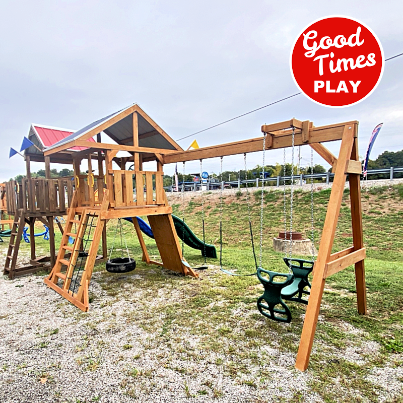 beams / accessories: 3 position swing beam with (2) belt swings & ez ryder (2-kid swing)