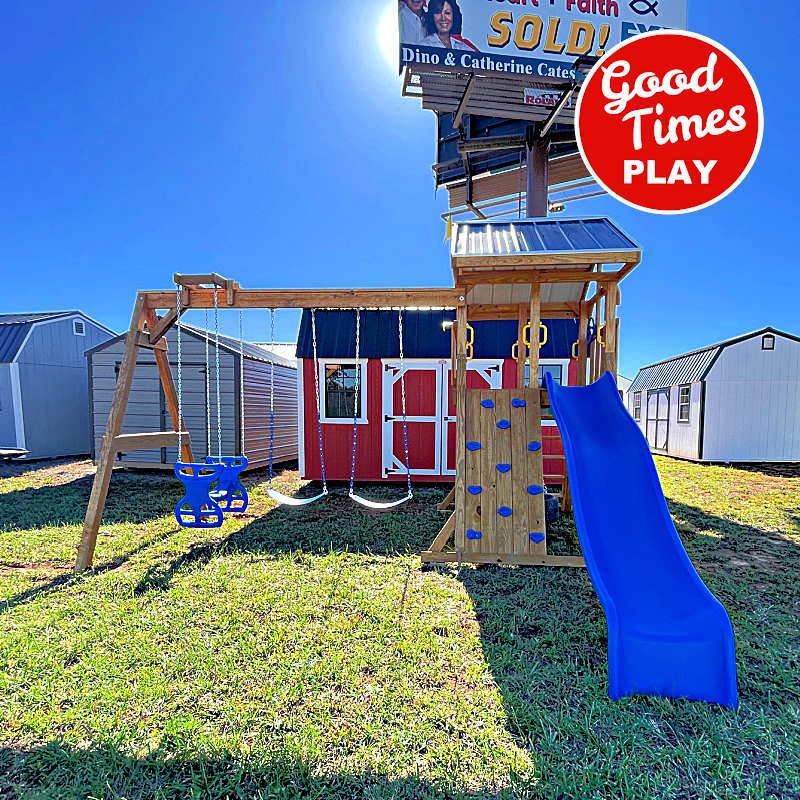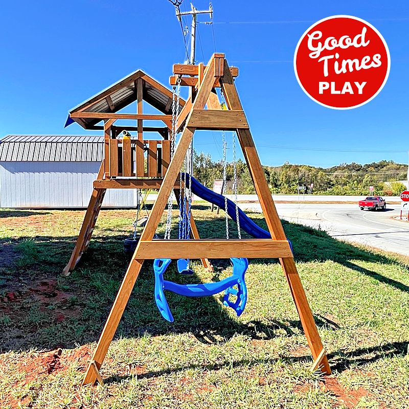 beams / accessories: 3 position swing beam with (2) belt swings & ez ryder (2-kid swing)