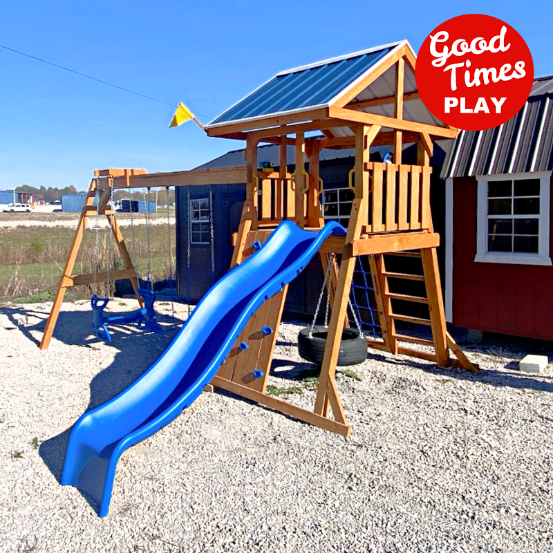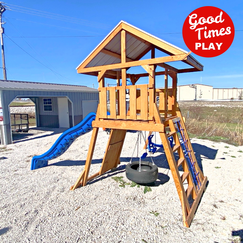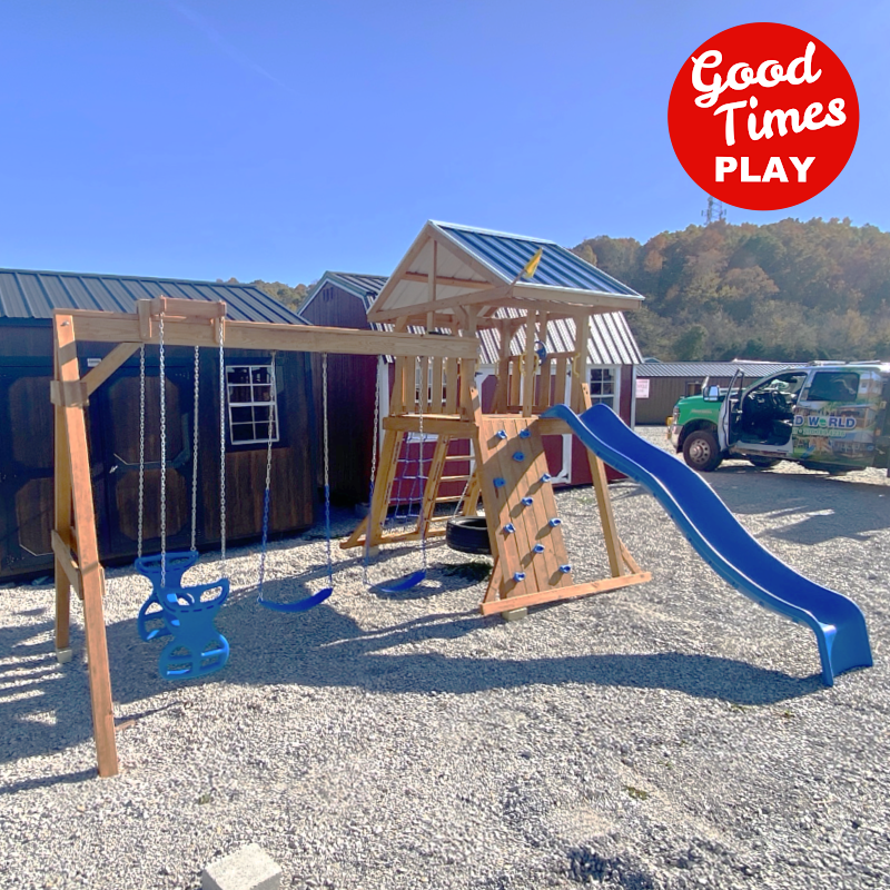 beams / accessories: 3 position swing beam with (2) belt swings & ez ryder (2-kid swing)