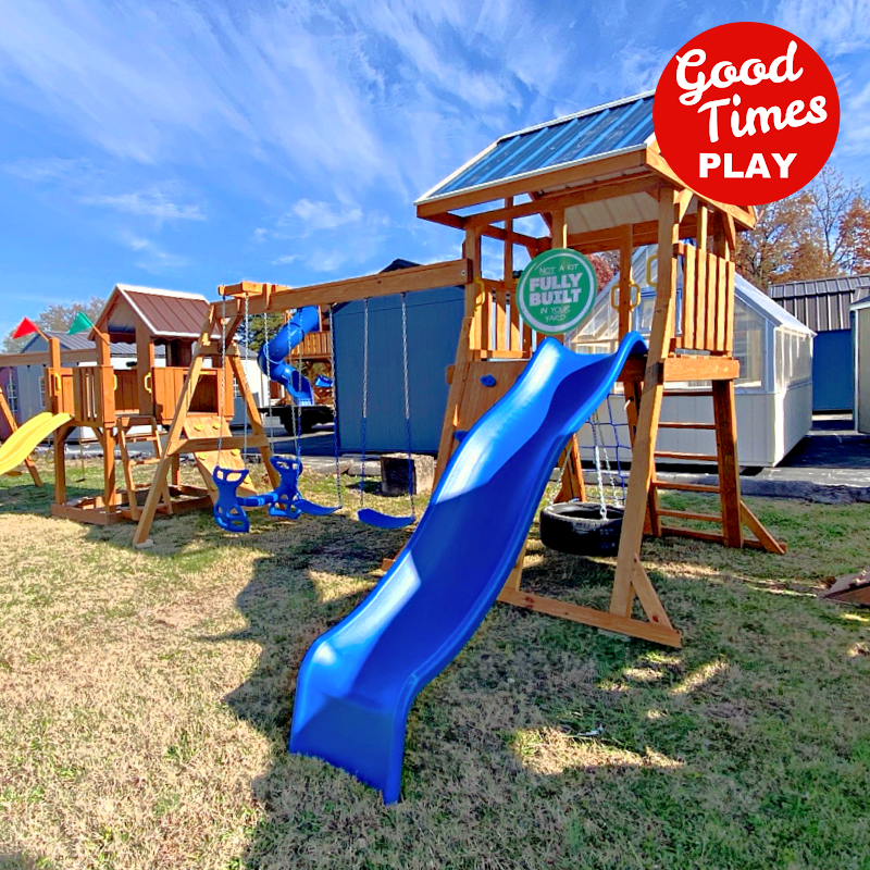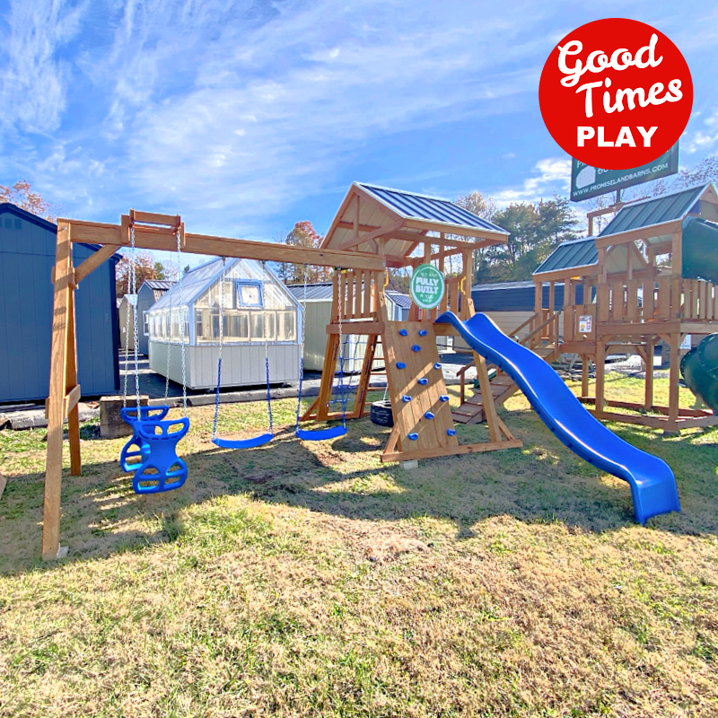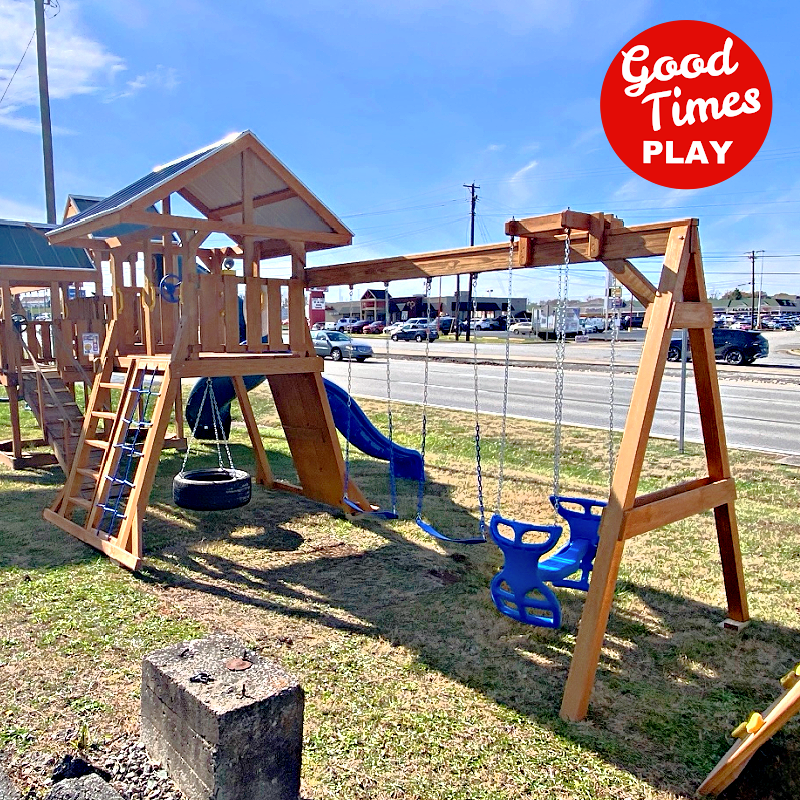 beams / accessories: 3 position swing beam with (2) belt swings & ez ryder (2-kid swing)
