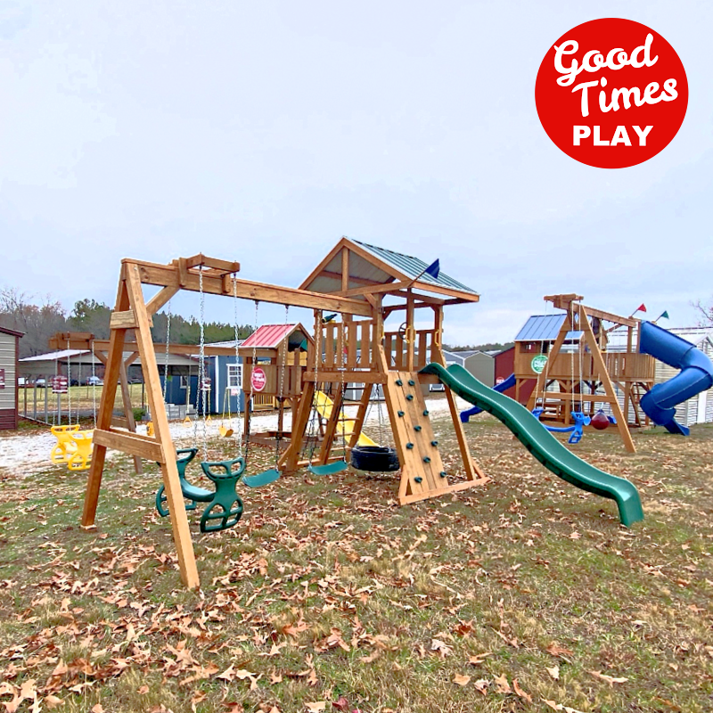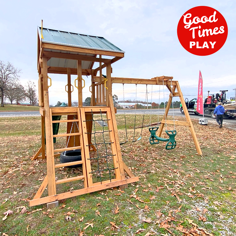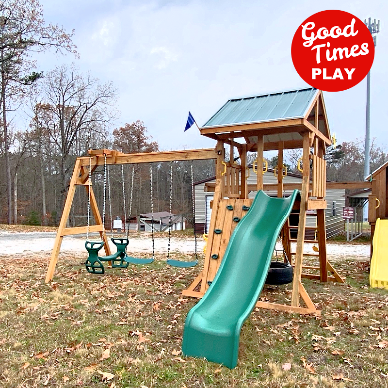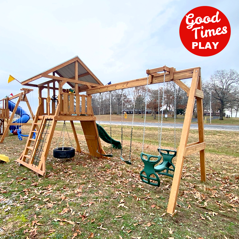 beams / accessories: 3 position swing beam with (2) belt swings & ez ryder (2-kid swing)
