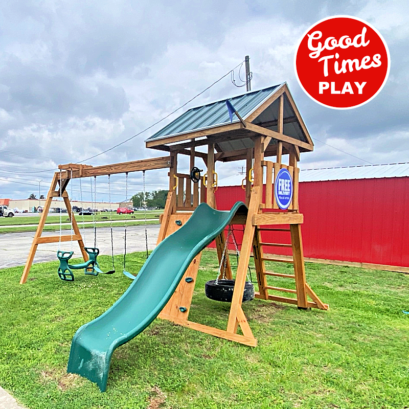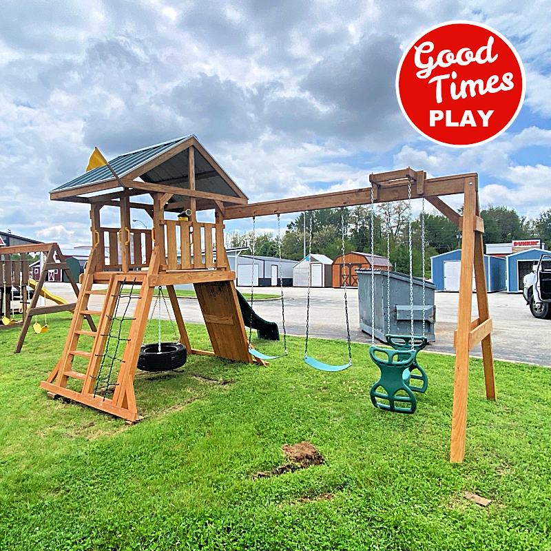 beams / accessories: 3 position swing beam with (2) belt swings & ez ryder (2-kid swing)