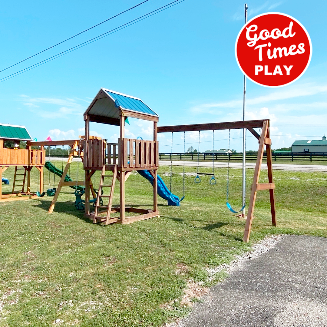 beams / accessories: 3 position swing beam with (2) belt swings & trapeze bar with rings