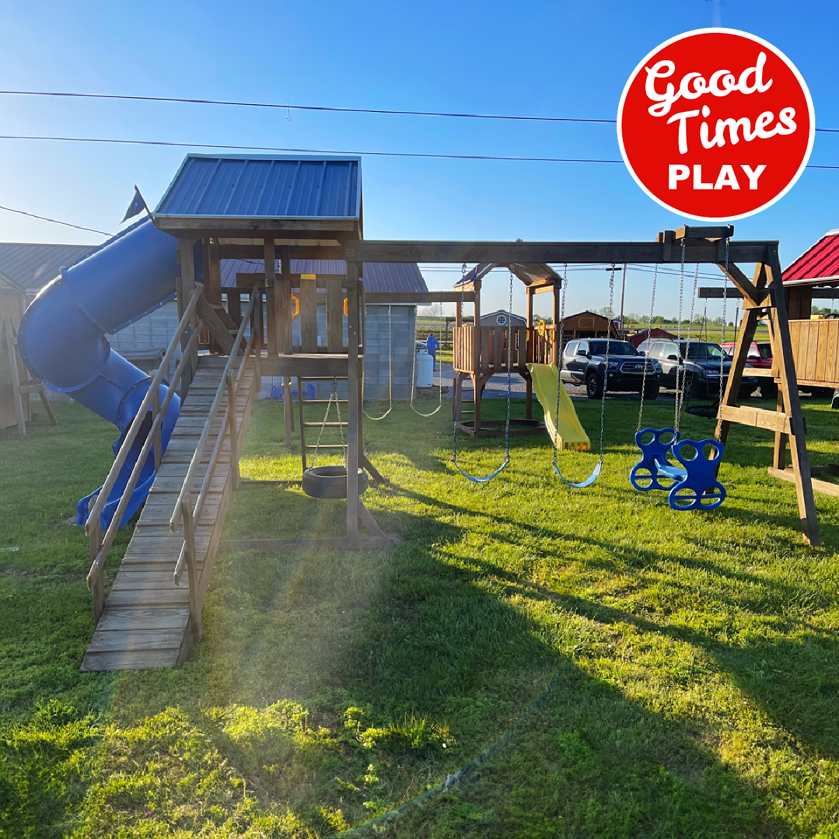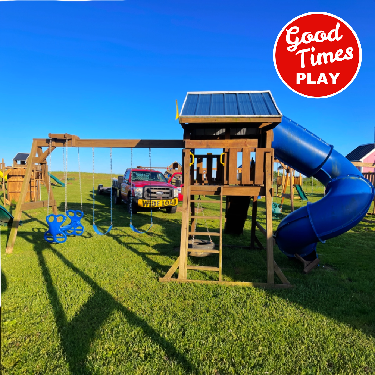 beams / accessories: 3 position swing beam with (2) belt swings & ez ryder (2-kid swing)
