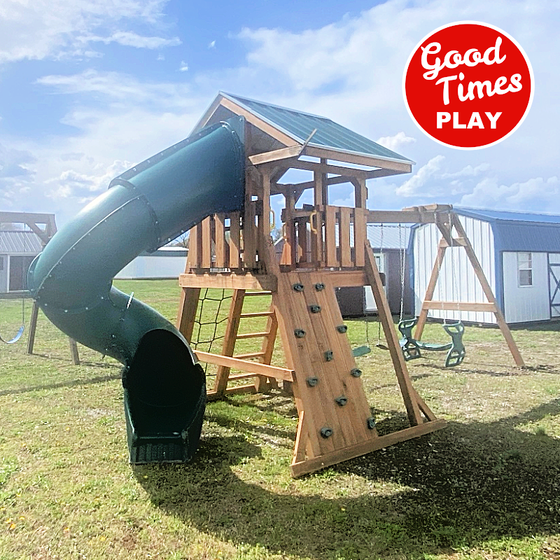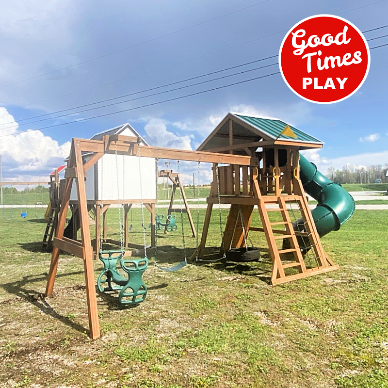 beams / accessories: 3 position swing beam with (2) belt swings & ez ryder (2-kid swing)