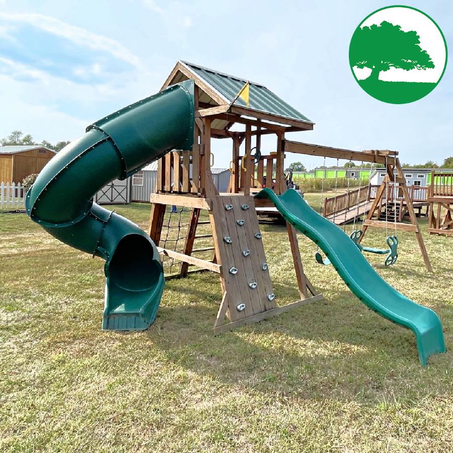 beams / accessories: 3 position swing beam with (2) belt swings & ez ryder (2-kid swing)