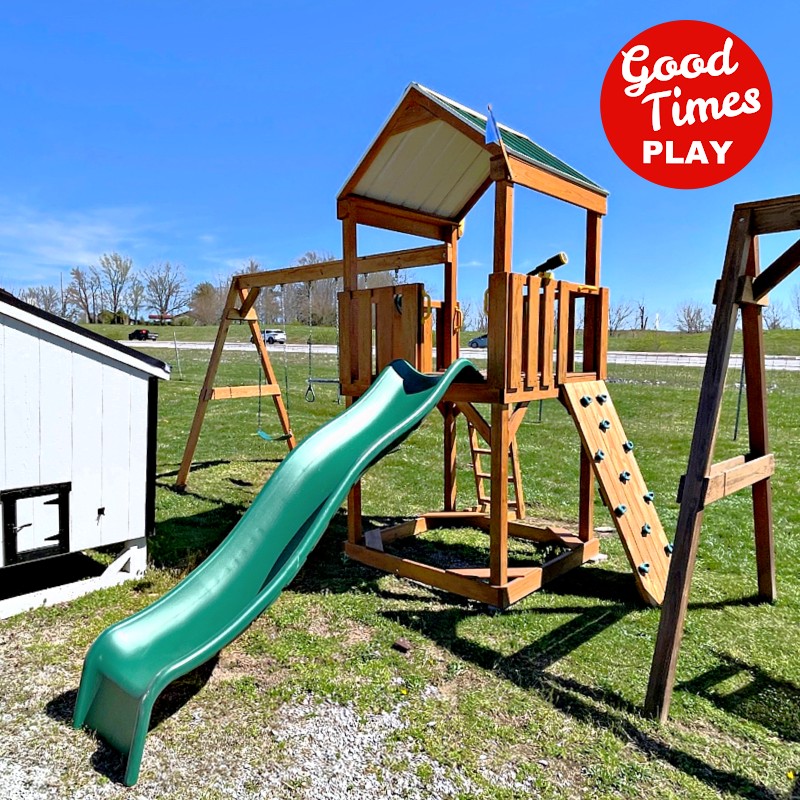 beams / accessories: 3 position swing beam with (2) belt swings & trapeze bar w/ rings