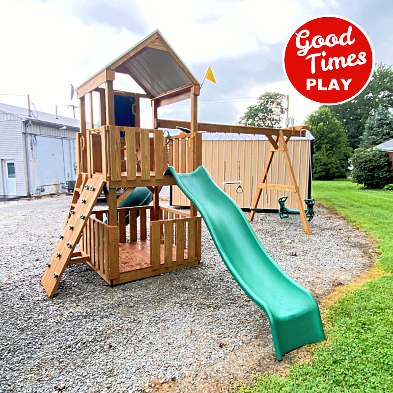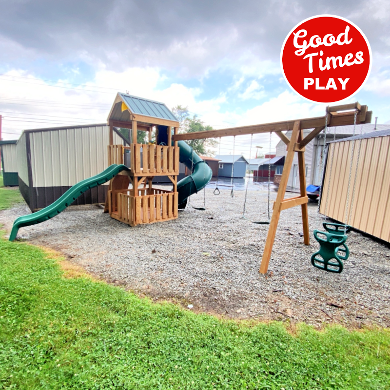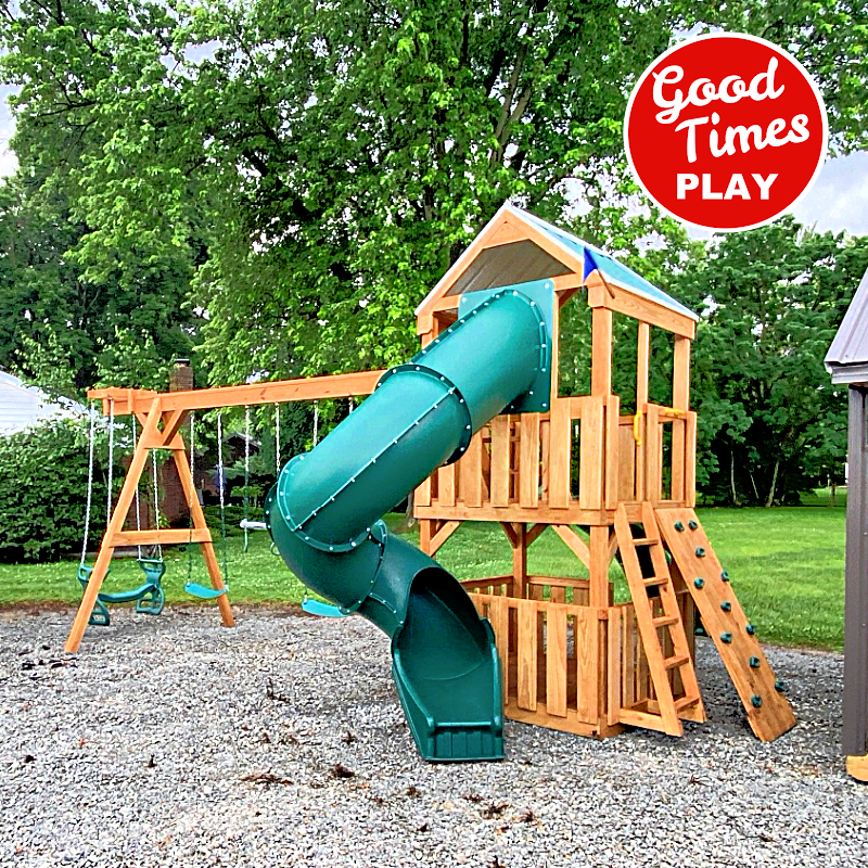 beams / accessories: 4 position swing beam with (2) belt swings, trapeze bar w/ rings & ez ryder (2 kid swing)